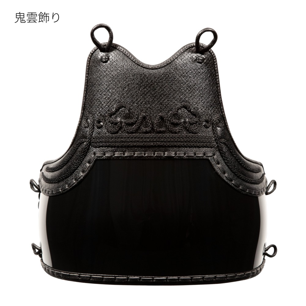 衝撃吸収性と耐久性を十分に備えた強化樹脂製の「胴」を女性専用サイズにカスタマイズ。肩幅など女性ならではの体格に配慮し、胴胸の幅を縮小しています。軽量でも十分な強度を発揮できる強化樹脂ならではの軽快さも大きな味方になってくれるはず。人の目に留まりやすい胸飾りは飽きのこない王道のデザインで根強い人気を集める伝統の「鬼雲飾り」。全サイズに標準装備された小胸は見栄えの良さだけではなく、竹刀が脇に入り込むのを防いでくれます。