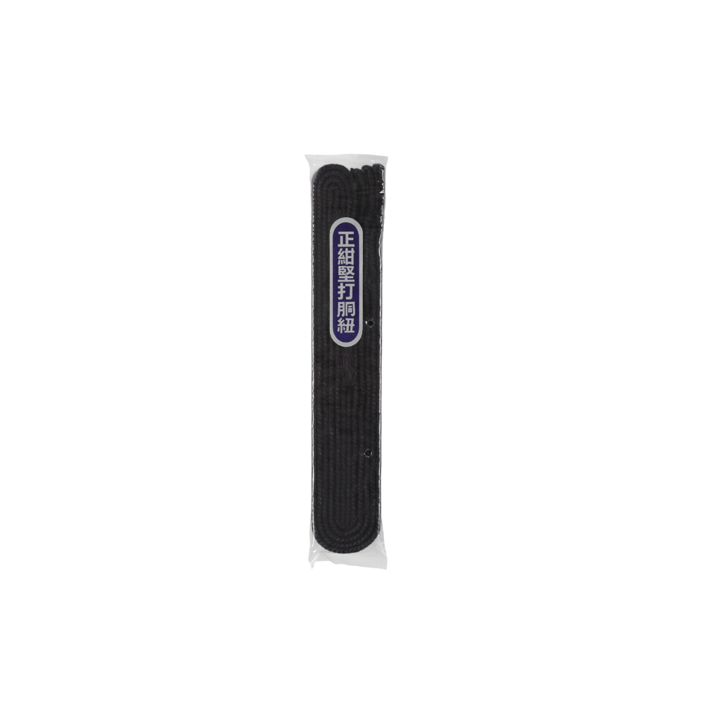 4本一組(胸紐×2、腰紐×2)の紺堅打胴紐(松)です。「松」は非常に細い糸を使っており、その分紐を同じ太さに仕上げるために最もたくさんの糸を使用していますので、耐久性もラインナップ中最高の高級品となります。また見栄えもよいため高級防具をお使いの方や、稽古中によく解けてしまう方にお勧めです。